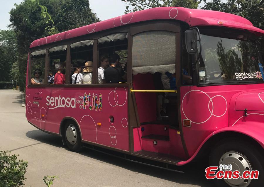 A shuttle bus on Sentosa Island, Singapore, June 10, 2018. (Photo: China News Service/Meng Xiangjun)