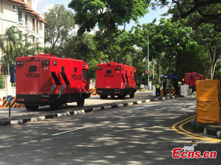 Police cars are seen near the Shangri-La Hotel in Singapore, June 11, 2018. The Singapore government has declared the area surrounding the Shangri-La Hotel a “special event area” for the period of June 10 to 14, for the upcoming summit between United States President Donald Trump and Democratic People's Republic of Korea supreme leader Kim Jong-un. (Photo: China News Service/Meng Xiangjun)