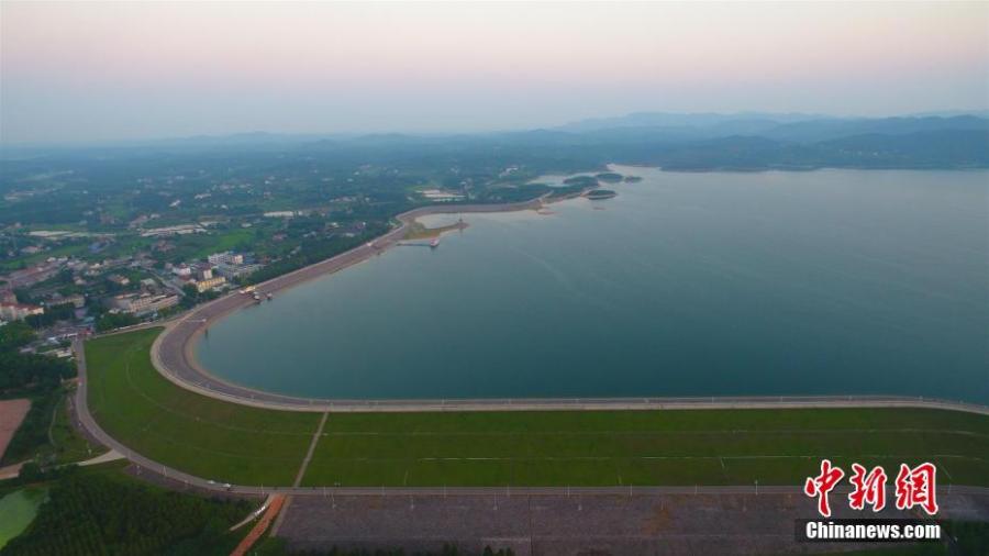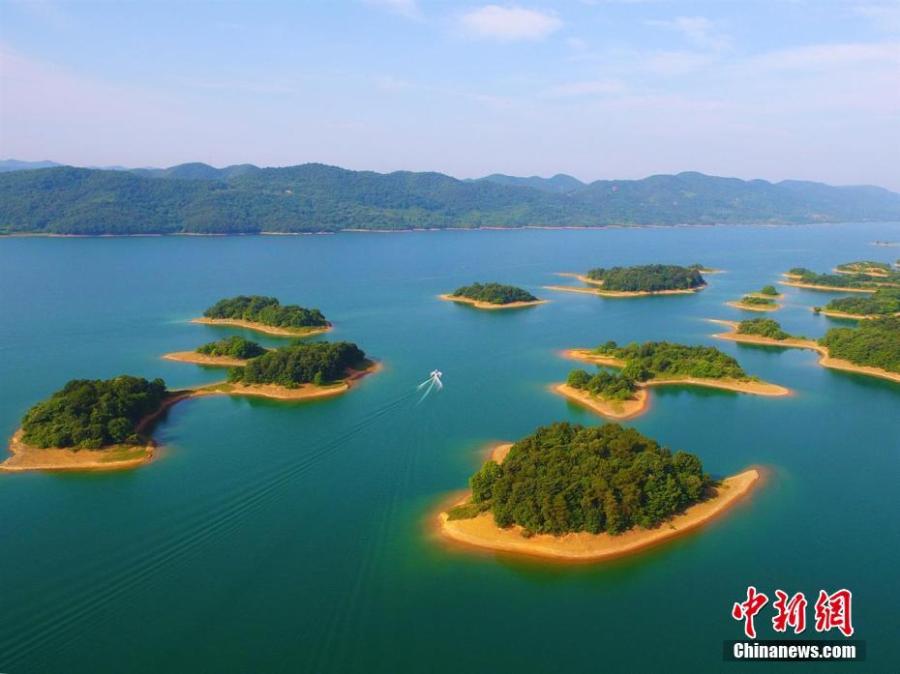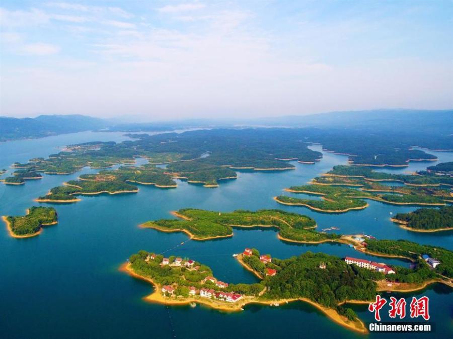 A view of the Weishui Reservoir in Songzi City, Central China’s Hubei Province. The S-shaped reservoir dam is 8,968 meters long and said to be the longest earth-filled man-made dam in Asia. The reservoir contains hundreds of islands, making it a top tourist attraction, and it is also home to a leading camping site. (Photo: China News Service/Zhou Xingliang)