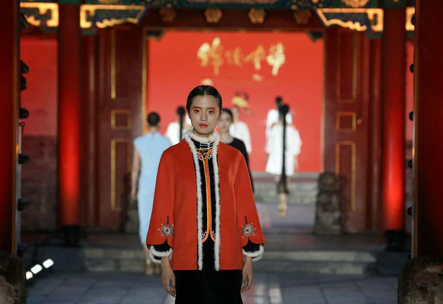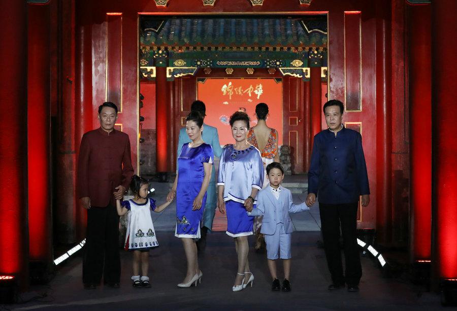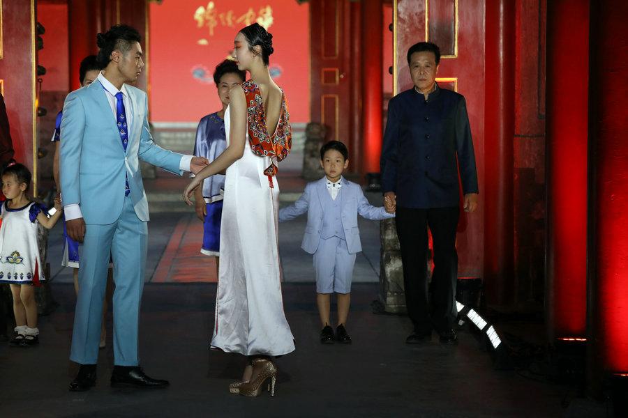 The models, from toddlers to young women to aged couples, wore clothes that combined modern designs and Beijing embroidery.