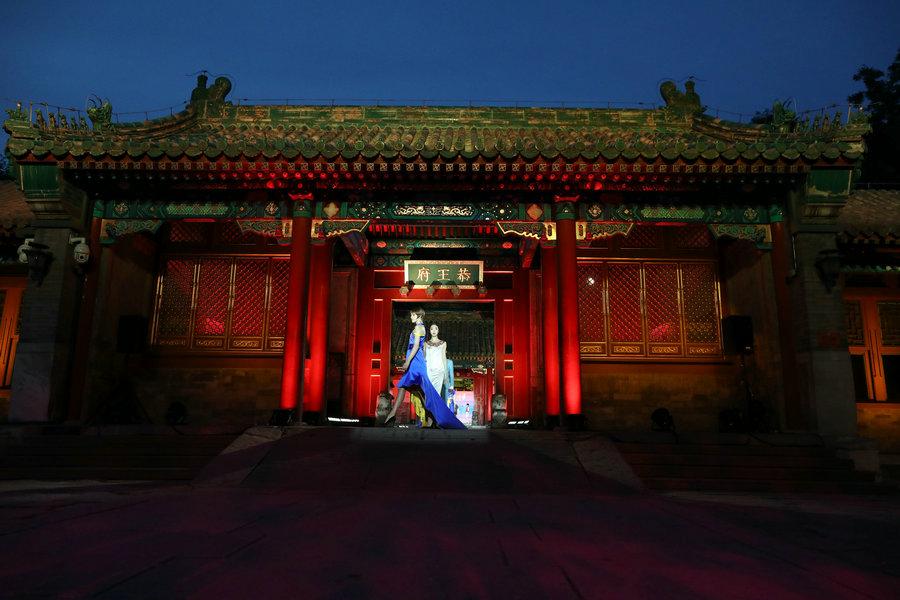 Models present designs by D.Rita at the Prince Kung's Mansion in Beijing, June 8, 2018. The runway is a part of "Splendid China: China Intangible Cultural Heritage Fashion Show", one activity of the 2018 Cultural and Natural Heritage Day. (Photo/China Daily)