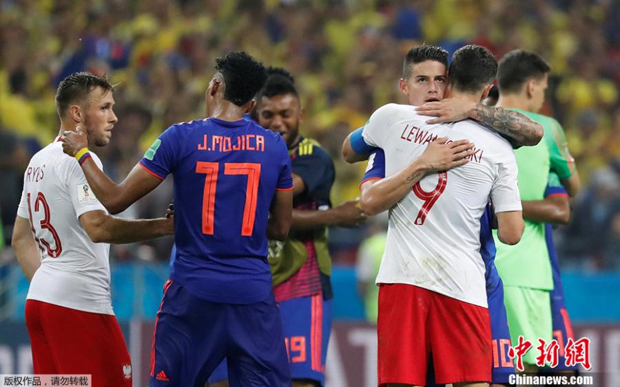 A match between Argentina and Colombia in a Group H match of the World Cup in Kazan, Russia, June 24, 2018. Poland have lost any chance to qualify for the knockout phase of World Cup after falling to Colombia 3-0 in their second Group H match in the Kazan Arena on Sunday.(Photo/Agencies)