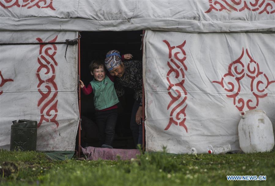 A little girl and her grandma plays in a yurt at the summer pasture on the Barlik Mountain in Yumin County, northwest China's Xinjiang Uygur Autonomous Region, June 22, 2018. Local herdsmen have transferred their livestock to summer pastures on the Barlik Mountain since late June and will stay here until September. Local authorities has devoted efforts in recent years to protect the ecological environment on the pasture and upgrade driveways to improve the infrastructure construction in the pasturing area. (Xinhua/Hu Huhu)
