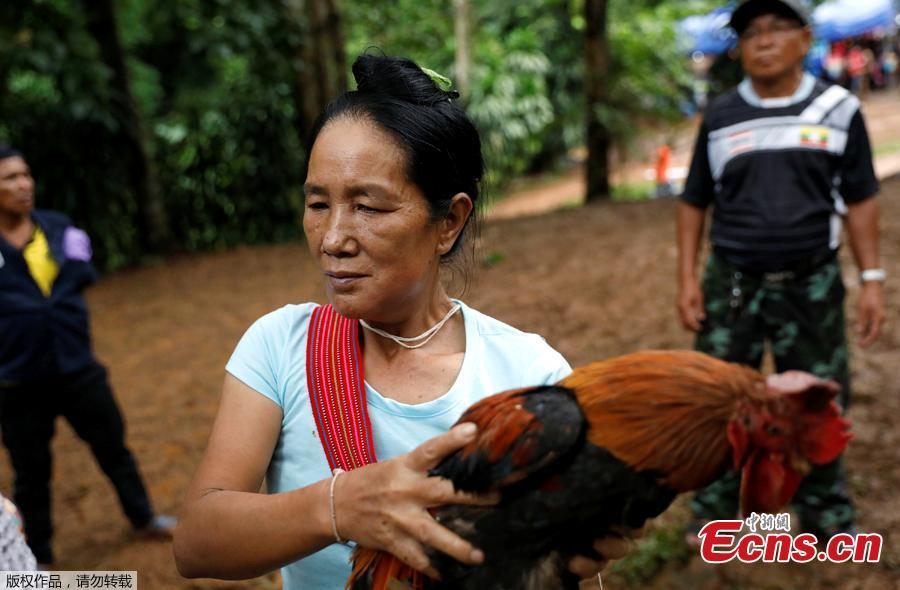 A woman carries a chicken to release as people pray near the Tham Luang caves during a search for members of an under-16 soccer team and their coach, in the northern province of Chiang Rai, Thailand, June 27, 2018. Twelve boys, aged 11 to 16, and their 25-year-old coach, were trapped on Saturday after heavy rain flooded the cave complex in a forest park in the northern province of Chiang Rai. (Photo/Agencies)