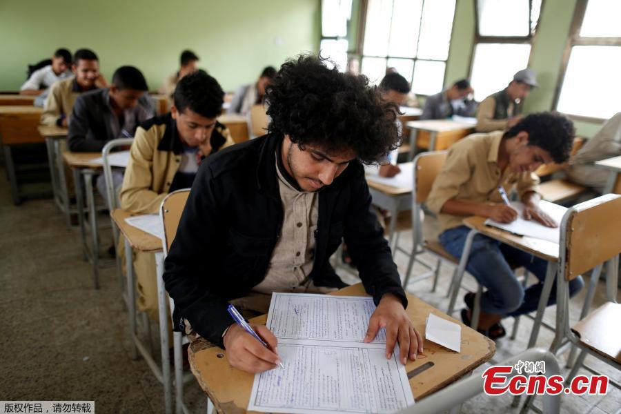 Students take their final term exam of high school in Sanaa, Yemen, June 30, 2018. (Photo/Agencies)