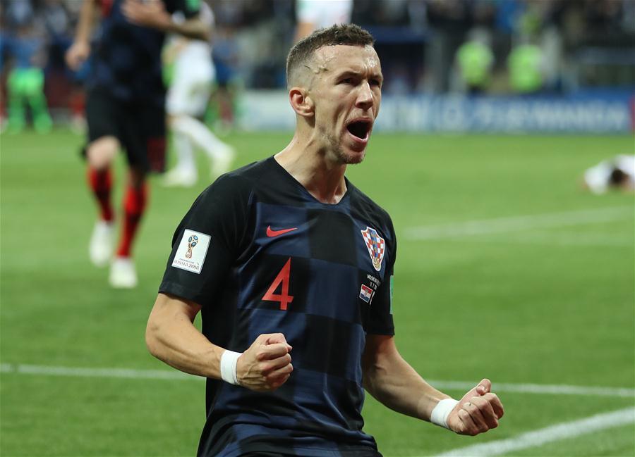 Ivan Perisic of Croatia celebrates scoring during the 2018 FIFA World Cup semi-final match between England and Croatia in Moscow, Russia, July 11, 2018. (Xinhua/Wu Zhuang)