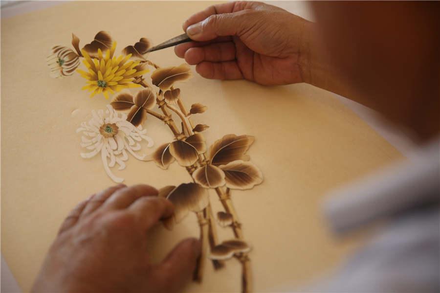 Local farmer Ding Xisen in Boli town of Shandong province's Qingdao has dedicated more than 20 years to the study and craft of straw painting. Ding, an intangible cultural heritage inheritor, uses the natural gloss and texture quality of wheat straw to fuse the art forms of traditional Chinese painting, block print, pyrograph, paper-cutting and calligraphy into his creations.