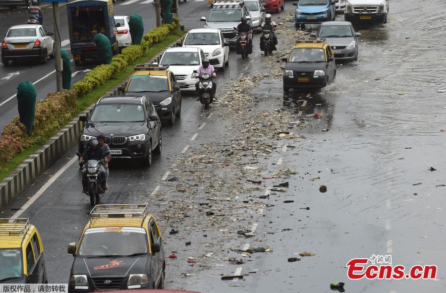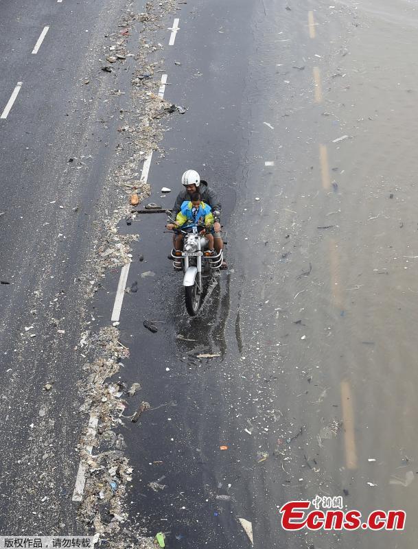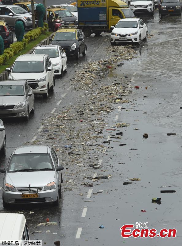 Garbage washed ashore during high tide on a road by the Arabian Sea in Mumbai, India, July 13, 2018. (Photo/Agencies)