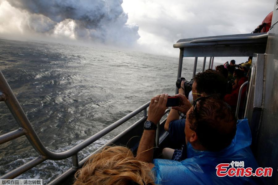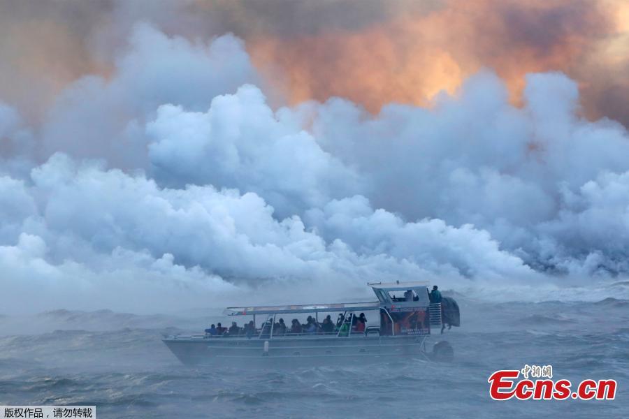 File photo: People watch from a tour boat as lava flows into the Pacific Ocean in the Kapoho area, east of Pahoa, during ongoing eruptions of the Kilauea Volcano in Hawaii, U.S., June 4, 2018. (Photo/Agencies)
