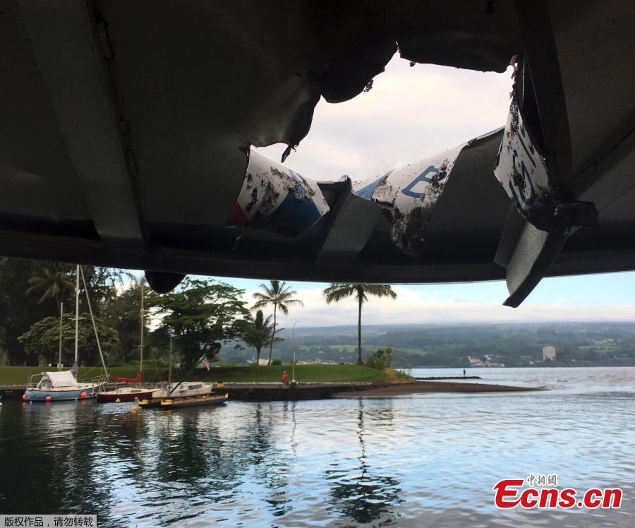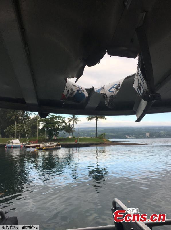 This photo provided by the Hawaii Department of Land and Natural Resources shows damage to the roof of a tour boat after an explosion sent lava flying through the roof off the Big Island of Hawaii Monday, July 16, 2018, injuring at least 23 people. The lava came from the Kilauea volcano, which has been erupting from a rural residential area since early May. (Photo/Agencies)