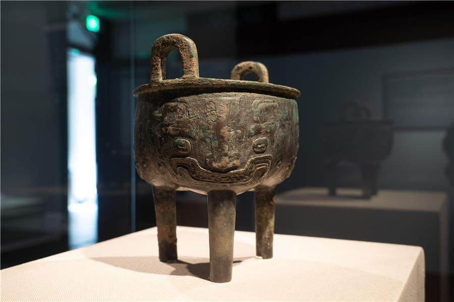 A tripod with decorative design of beasts from the late Shang Dynasty (13th-11th century BC). It was preserved by the Royal Asiatic Society before and is now held by the Shanghai Museum. (Photo/China Daily)