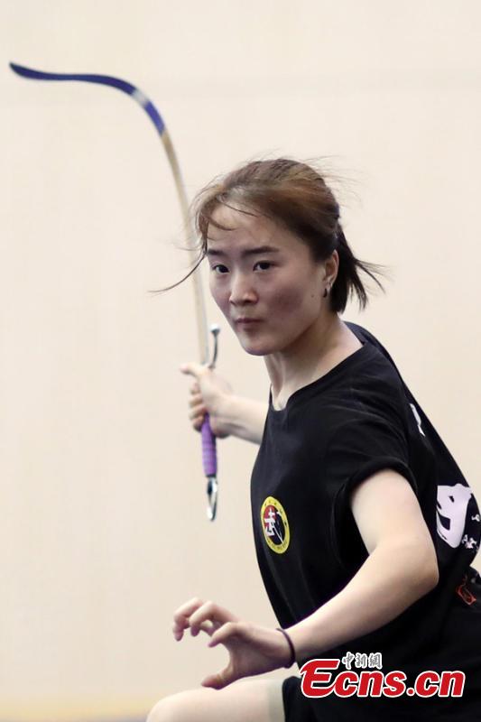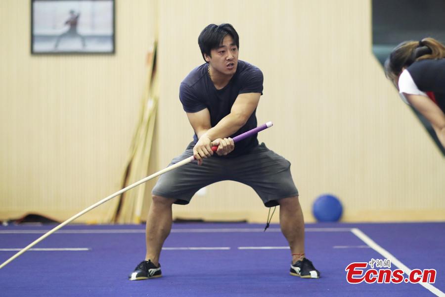 A member of the Nanjing Agricultural University Martial Arts Team trains for the upcoming China University Students Martial Arts Routine Championship in Nanjing City, East China’s Jiangsu Province, July 19, 2018, as temperatures hit approximately 35 degrees centigrade. (Photo: China News Service/Yang Bo)