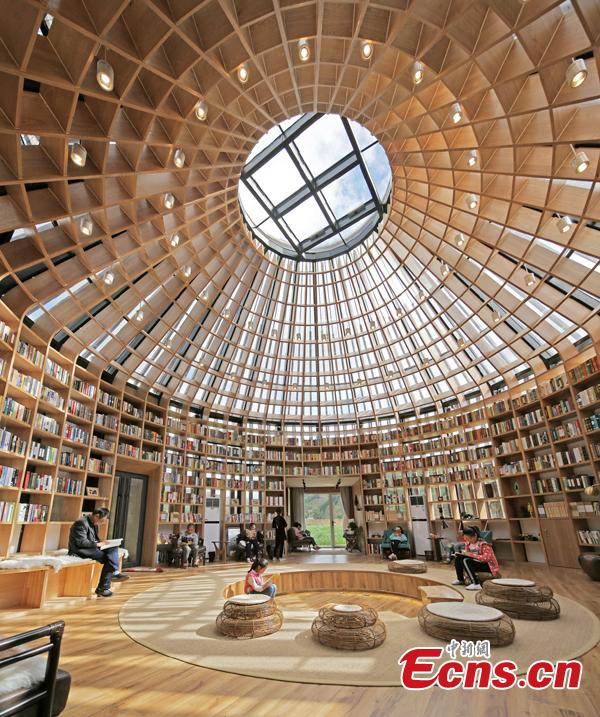 A view of the Mulang Weichang Visitor Center that Chinese-American actor Daniel Wu helped to design in Hebei Province. Wu and architect Zhang Hai'ao are listed as the chief designers for the building, in a collaboration with Shanghai architecture firm HDD. The center, inspired by the traditional Mongolian yurt, is an enormous library with a skylight that allows star-gazing at night and six residential rooms. It also earned a nod from the Royal Institute of British Architects (RIBA), the equivalent of the British "Oscars" in the architecture industry. (Photo provided to China News Service)