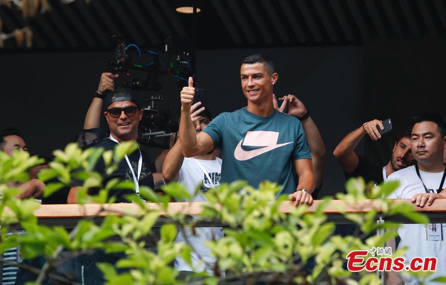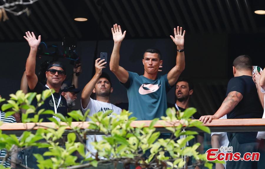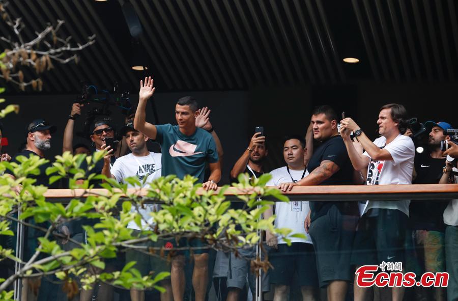 Portuguese professional footballer Cristiano Ronaldo waves to fans during a commercial activity in Beijing, July 19, 2018. (Photo: China News Service/Jia Tianyong)