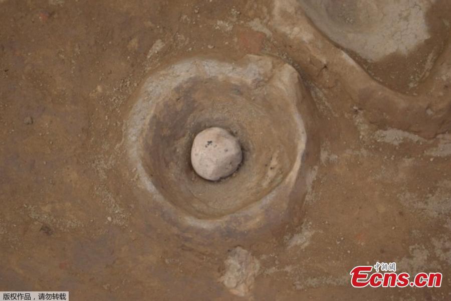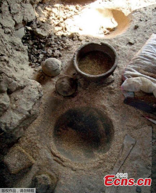 This photo released on July 19, 2018, by the Egyptian Antiquities ministry shows the oldest workshop for the pottery industry of the old state discovered by a mission working in the groundwater reduction project in the Temple of Kom Ombo in Aswan, Egypt. The pottery workshop was built during the Fourth Dynasty of ancient Egypt (between 2613 and 2494 BC).This rare discovery provided a glimpse into daily life millenia ago.(Photo/Agenceis)