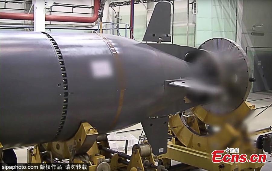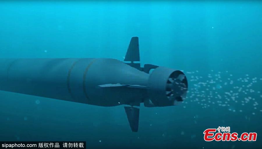 This photo shows Poseidon nuclear-powered and nuclear-armed unmanned underwater vehicle during the final stage of testing. Poseidon is a brand new intercontinental range undersea weapon able to destroy enemy naval bases and aircraft carriers. (Photo/Sipaphoto)