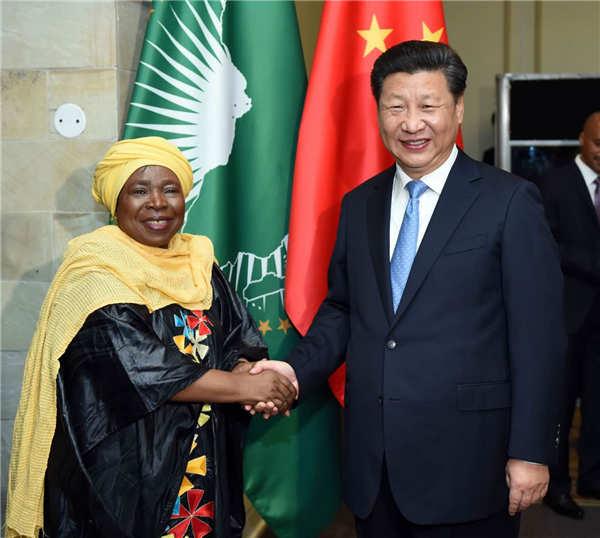 Chinese President Xi Jinping, right, meets with African Union Commission Chairperson Nkosazana Dlamini-Zuma in Pretoria, South Africa on Dec 3, 2015. (Photo/Xinhua)
