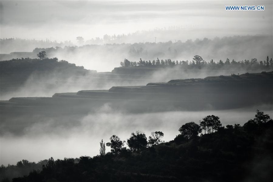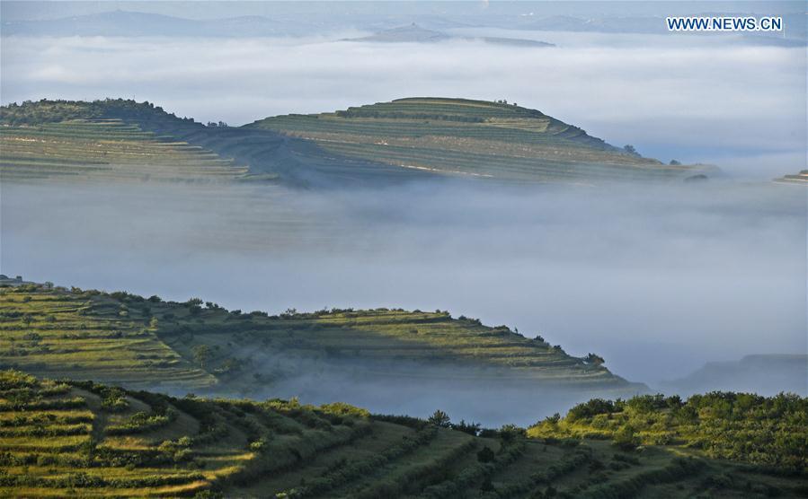 Photo taken on July 17, 2018 shows scenery of Jinjiping terrace park in Pengyuan County, northwest China's Ningxia Hui Autonomous Region. (Xinhua/Wang Peng)