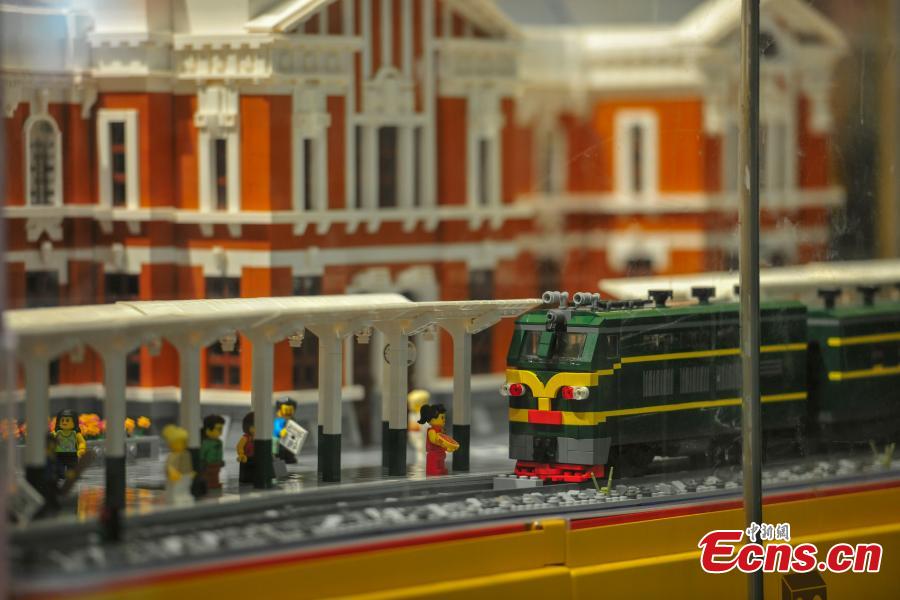 A replica of the Shenyang Railway Station made using Lego pieces is on display at a shopping mall in Shenyang City, Northeast China’s Liaoning Province, July 23, 2018. The model used 40,000 Lego pieces to vividly represent scenes near the station, including the breakfast stalls and busy street. (Photo: China News Service/Yu Haiyang)