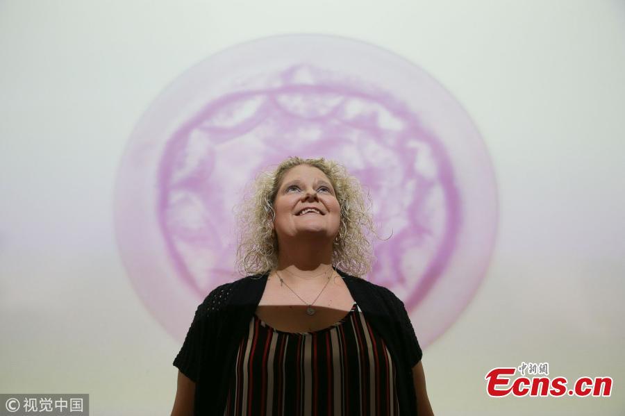 Louise Brown looks towards a dessicator at the Science Museum on July 23, 2018 in London, England. On 25th July 1978, Louise Brown became the first baby to be born using the In Vitro Fertilisation technique pioneered by British researchers Robert Edwards, Patrick Steptoe and Jean Purdy. The Science Museum in London is holding an exhibition entitled IVF: 6 Million Babies Later to celebrate the success of IVF. (Photo/VCG)