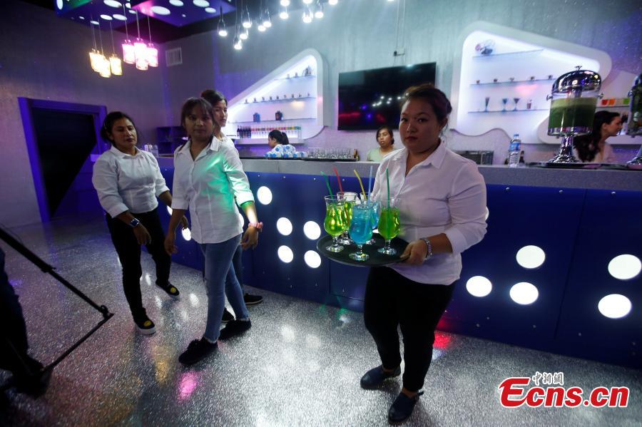 Waitresses serve an order at Luxury Time, the city's first women-only restaurant, in Erbil, Iraq July 17, 2018. (Photo/Agencies)