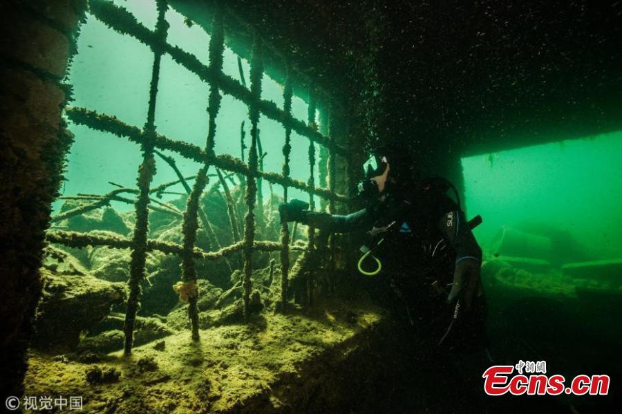 A diver explores Estonia’s Rummu Prison, situated in the middle of a submerged quarry. When Estonia regained its independence in 1991, the Soviets moved out and the labor prison at Rummu was closed. This once eerie place to hold inmates is now an amazingly popular beach where people swim in the deep blue water and dive. (Photo/VCG)