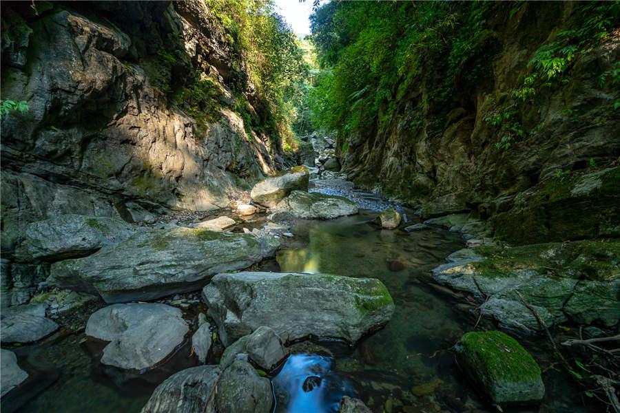 A stream winds through rocks at Jinfo Mountain in Chongqing municipality. (Photo provided to chinadaily.com.cn)