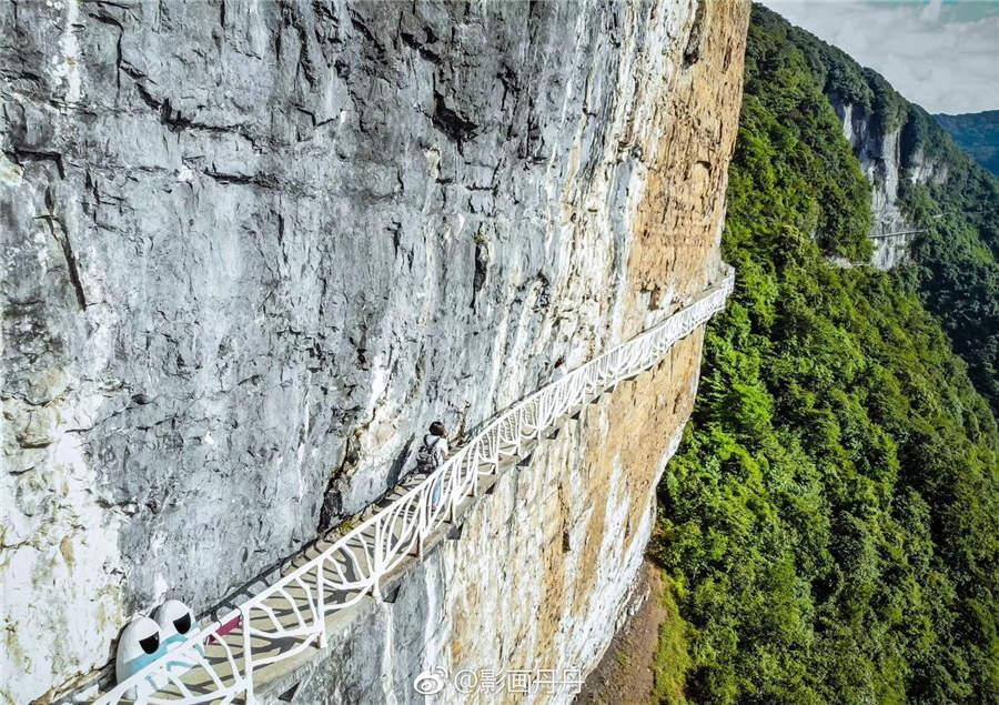 A walkway crosses a vertical cliff at Jinfo Mountain in Chongqing municipality. (Photo provided to chinadaily.com.cn)