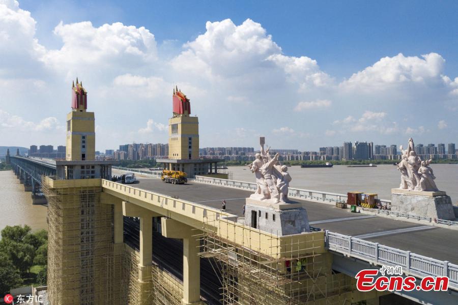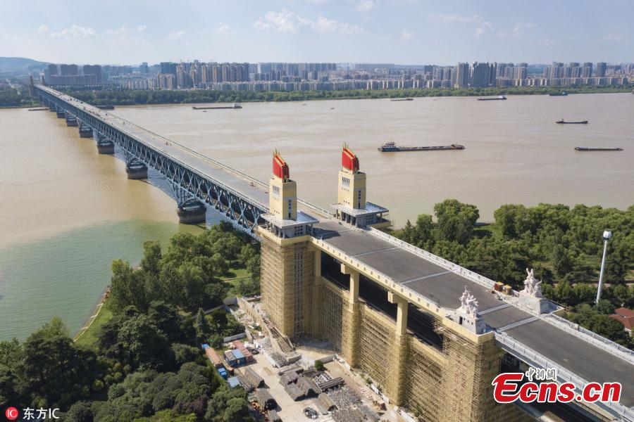 A view of the Nanjing Yangtze River Bridge, which has been undergoing renovations for 21 months, in Nanjing City, East China’s Jiangsu Province, Aug. 2, 2018. Built in 1968, the bridge was hailed an engineering breakthrough and became the pride of the nation at the time. It was closed in 2016 for the renovation project. (Photo/IC)