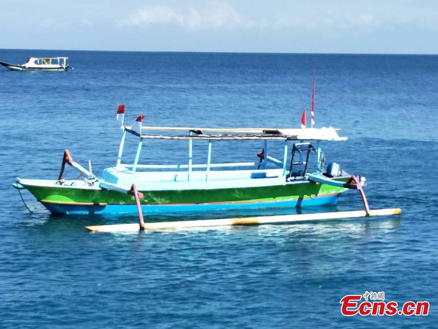 Photo taken on Aug. 7 shows empty boats on the water of the Lombok Island, Indonesia after a 7.0-magnitude earthquake hit the island on Aug. 5, 2018. (Photo: China News Service/Lin Yongchuan)