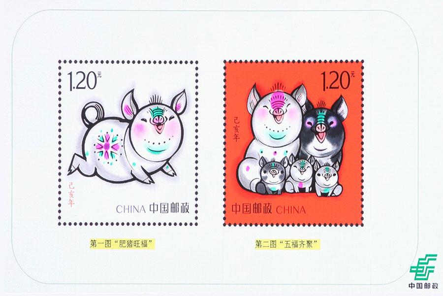 The set will feature one stamp an enormously plump pig symbolizing prosperity, and another stamp depicting a family of five pigs representing unity and happiness.