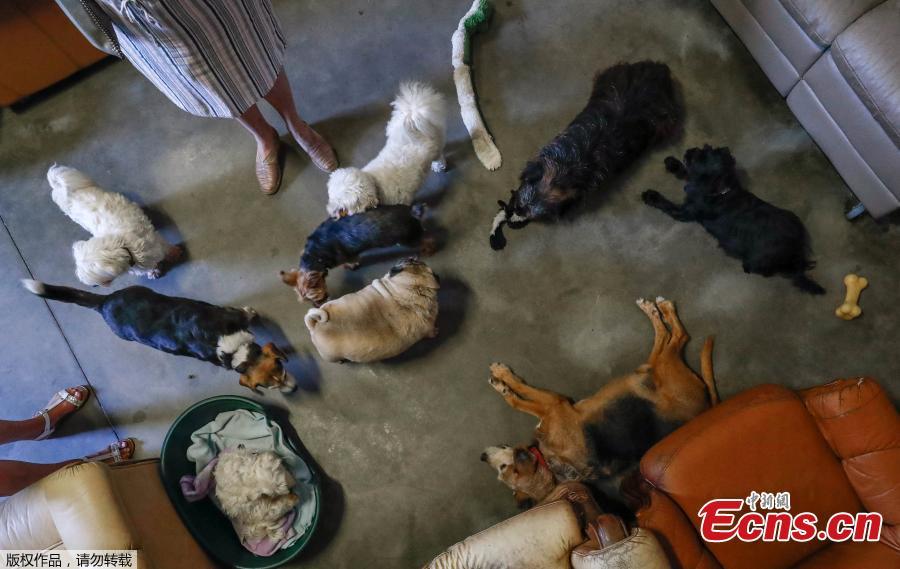 Dogs are seen at the association "Les Petits Vieux" acting as home for dozens of elderly animals, including dogs, cats, pigs and goats, in Chievres, Belgium August 7, 2018. (Photo/VCG)