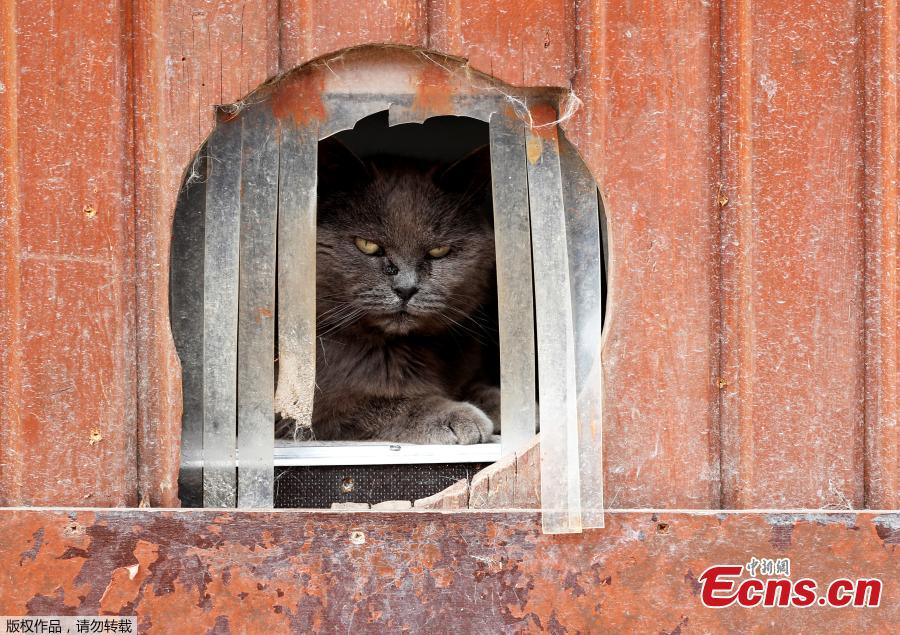 Calin, a European cat, is seen at the association "Les Petits Vieux", home for dozens of elderly animals, including dogs, cats, pigs and goats in Chievres, Belgium August 7, 2018. (Photo/VCG)