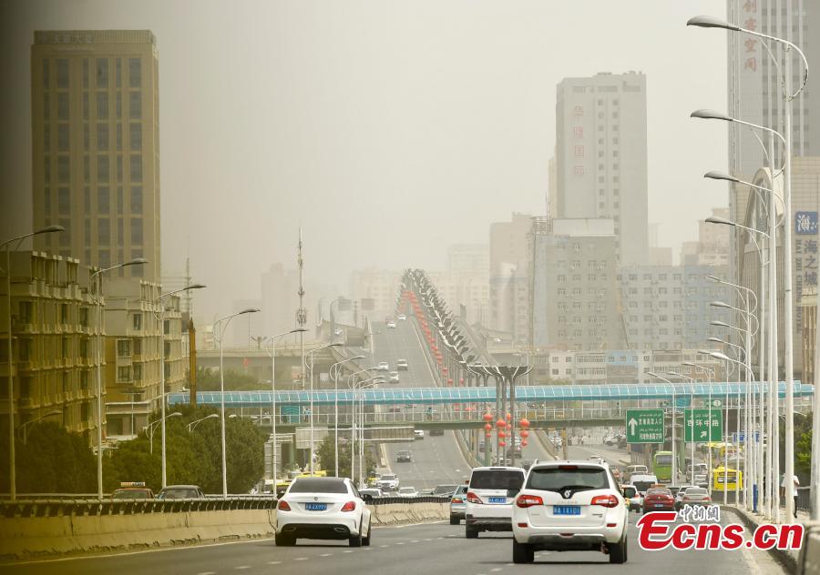 A sandstorm hits Urumqi, capital of Northwest China’s Xinjiang Uygur Autonomous Region, Aug. 12, 2018. Visibility was reduced as dust shrouded the city, where temperatures reached approximately 35 degrees centigrade. (Photo: China News Service/Liu Xin)