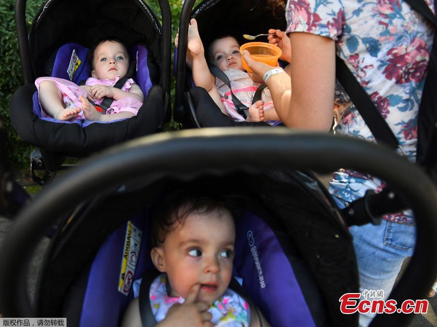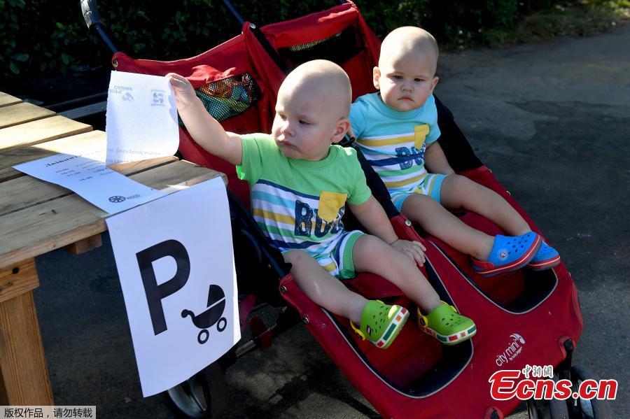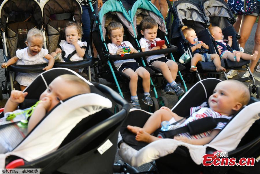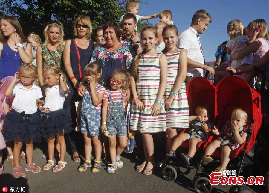 Twins and triplets children are seen, as they set the new record of twins, at the Festival Of Twins in Kiev, Ukraine, Aug. 11, 2018. Representatives of the Ukrainian National Register of Records registered the new record at 200 pairs of twins and triplets, who gathered at the same time in the same place. (Photo/Agencies)