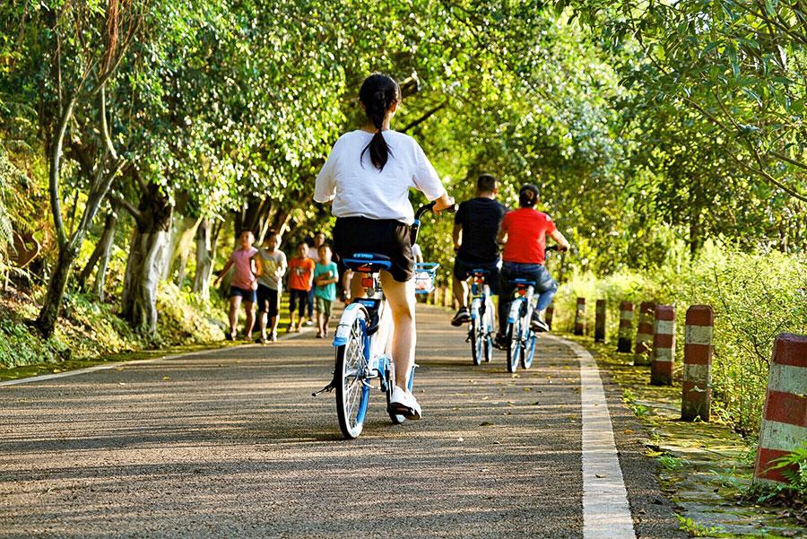 People ride their bikes near Guyu Lake in Longchang city, southeast of Sichuan Province, in early August. (Photo/China Daily)