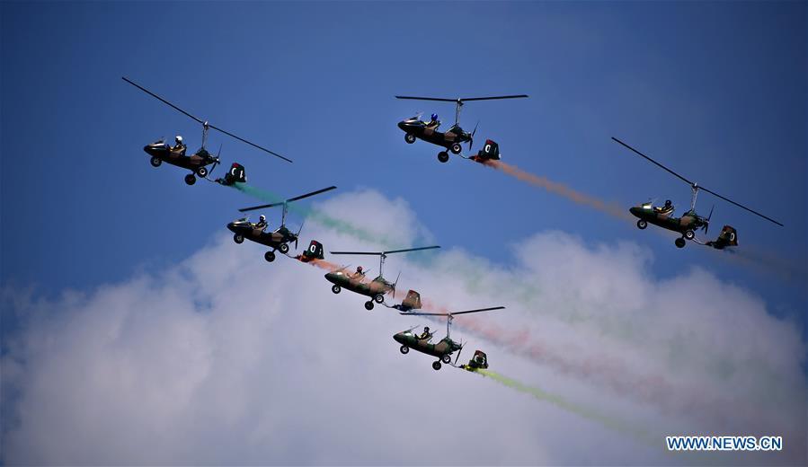 Photo taken on Aug. 19, 2018 shows autogyro performance during the 7th Faku Flight Conference in Shenyang, capital of northeast China's Liaoning Province. (Xinhua/Yao Jianfeng)