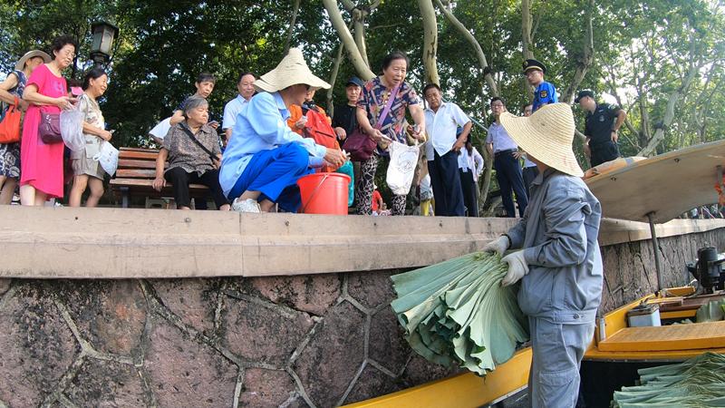But as the summer heat rose at the UNESCO World Heritage site in the Zhejiang provincial capital, a fully laden sampan appeared on the motionless water, bobbing toward the lake's northern bank.