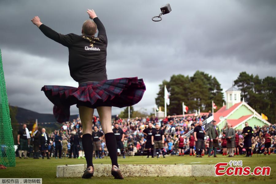 A competitor throws a hammer as he participates at the annual Braemar Highland Gathering in Braemar, Scotland, Britain, Sept. 1, 2018. The gathering is seen as the biggest in the Highland Games calendar and is known worldwide. (Photo/Agencies)