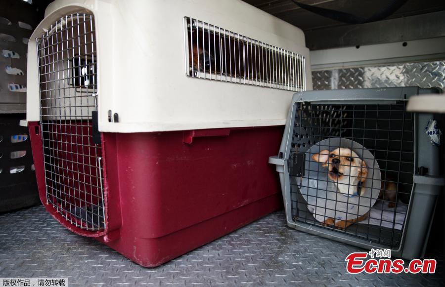 Stanford, a 6-month old Chihuahua mix, barks from inside a crate in a van as 26 cats and dogs arrive at Humane Rescue Alliance in Washington, Sept. 11, 2018, from Norfolk Animal Care and Control of Norfolk, Va., in advance of Hurricane Florence. People aren't the only ones evacuating to get out of the path of Hurricane Florence. The dogs and cats will all be available for adoption. (Photo/Agencies)