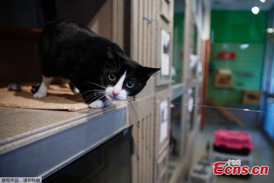 Miss Kitty, a four-year old short-haired cat, looks out from her new enclosure at Humane Rescue Alliance in Washington, Sept. 11, 2018. Miss Kitty is one of 26 cats and dogs that arrived in Washington from Norfolk Animal Care and Control of Norfolk, Va., in advance of Hurricane Florence. People aren't the only ones evacuating to get out of the path of Hurricane Florence. The dogs and cats will all be available for adoption. (Photo/Agencies)