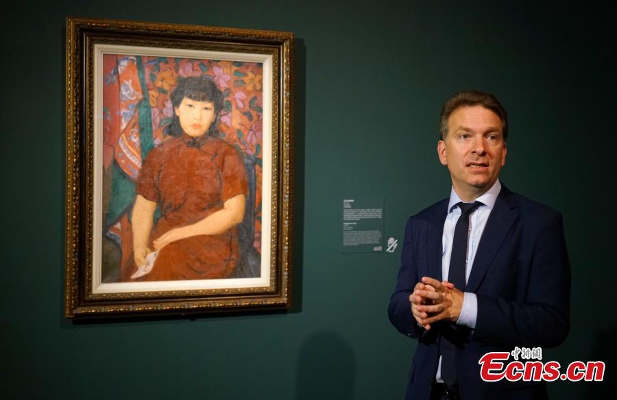 Eric Lefebvre, curator, talks about the Song of Spring: Pan Yu-Lin in Paris exhibition at the Chantal Miller Gallery, Asia Society Hong Kong Center, Sept. 11, 2018. Born of humble origins, Pan (1895- 1977) became one of the first Chinese students to study fine arts in France. With over sixty works of portraiture, nude, landscape, dance figure painting, and sculpture, this exhibition explores Pan’s second period in Paris, highlighting her artistic range and distinguished style that combines eastern and western sensibilities, according to the organizer. (Photo: China News Service/Zhang Wei)