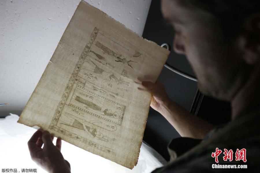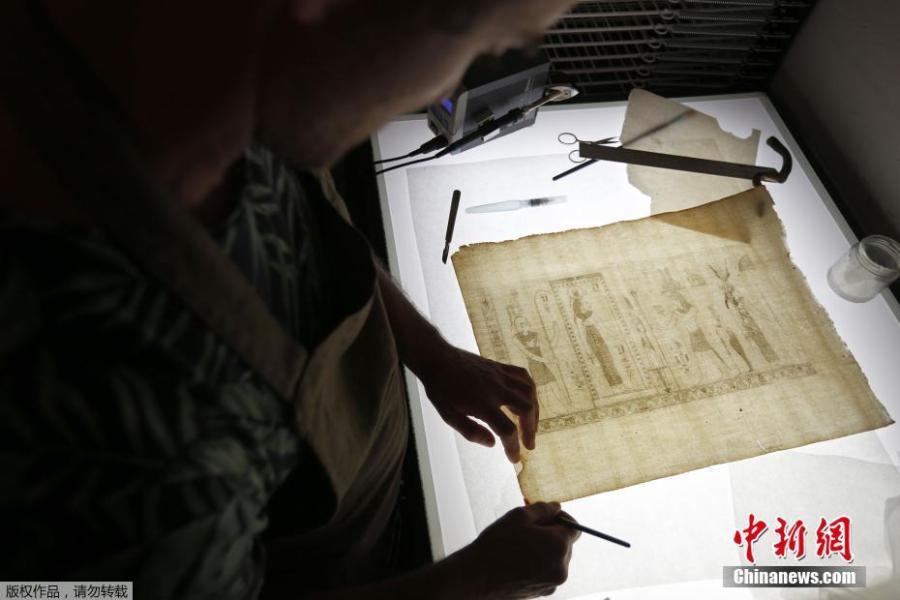 Italian conservator-restorer Simone Martini works on the restauration of the Thesaurus Hyeroglyphicorum book at the Ajaccio library on the French Mediterranean Island of Corsica, Sept. 7, 2018. (Photo/Agencies)