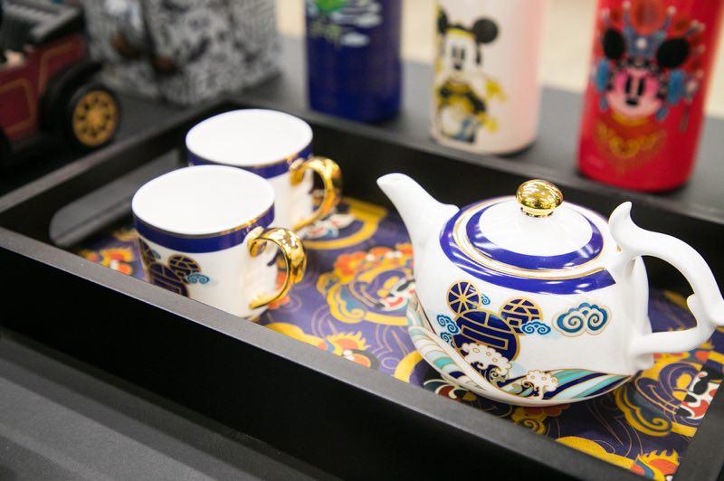 A Mickey Mouse teapot and cups set are stylized with a Chinese design. (Photo provided to chinadaily.com.cn)