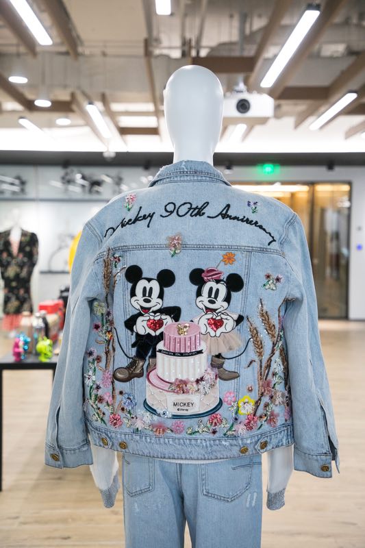 A jean jacket featuring Disney favorites Mickey Mouse and Minnie Mouse celebrates Mickey's 90th anniversary. (Photo provided to chinadaily.com.cn)