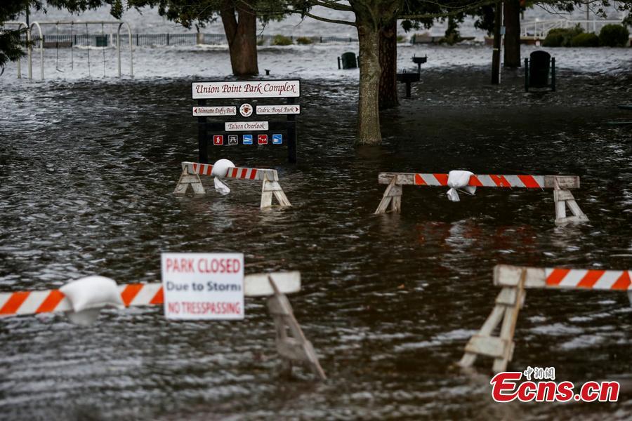 The Union Point Park Complex is seen flooded as the Hurricane Florence comes ashore in New Bern, North Carolina, U.S., Sept. 13, 2018. The outer bands of Hurricane Florence drenched the Carolinas on Thursday, flooding roads, gorging rivers and knocking out power in an ominous glimpse of the damage the storm could inflict when it makes landfall on Friday with millions of people in its path. (Photo/Agencies)