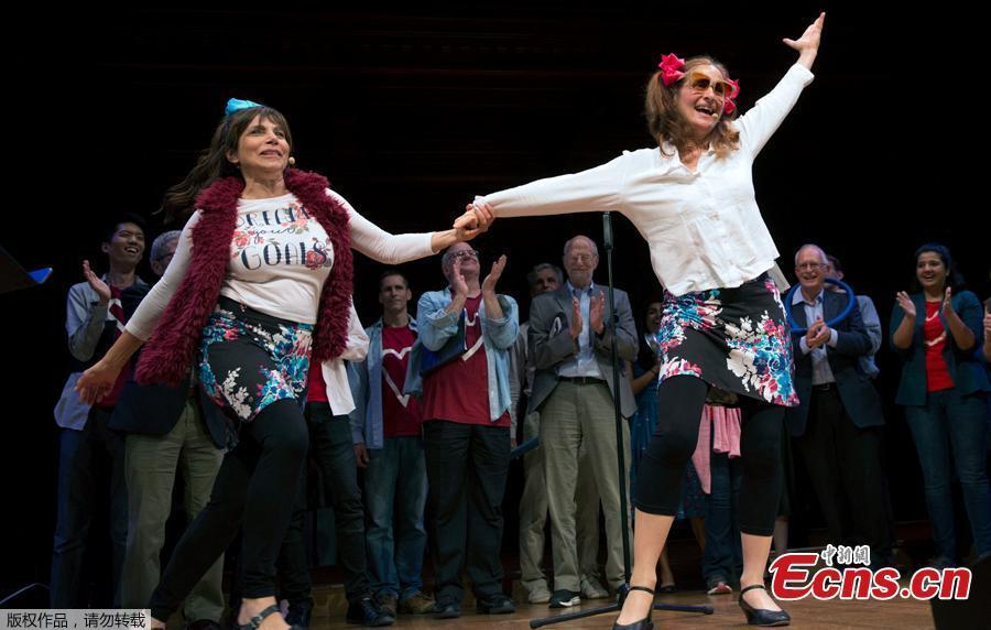 Maria Ferrante, right, and Jan Hadland perform in the Broken Heart Opera during Ig Nobel award ceremonies at Harvard University in Cambridge, Mass., Thursday, Sept. 13, 2018. (Photo/Agencies)