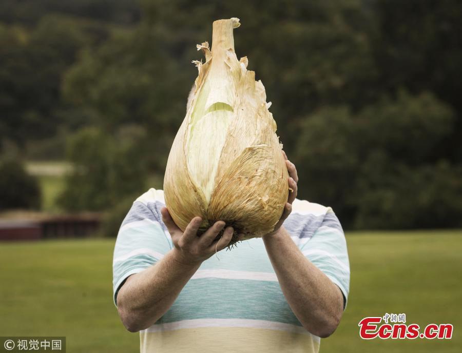 Nick Brake and his heaviest onion, which weighed in at 7.755kg.(Photo/VCG)