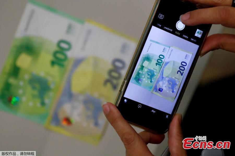 The security features on new 100- and 200-euro banknotes are presented at the ECB headquarters in Frankfurt, Germany, September 17, 2018. (Photo/Agencies)