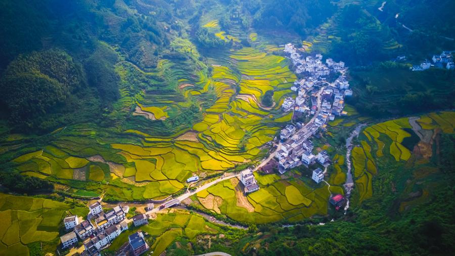 Huangling village in Wuyuan county, East China's Jiangxi Province, glitters with an autumn harvest glow, Sept. 15, 2018. (Photo/chinadaily.com.cn)